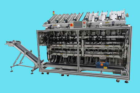 面膜折疊機原理:手工放棉-自動折棉-自動轉向-自動裝袋-空袋檢測-自動壓袋-成品收集。