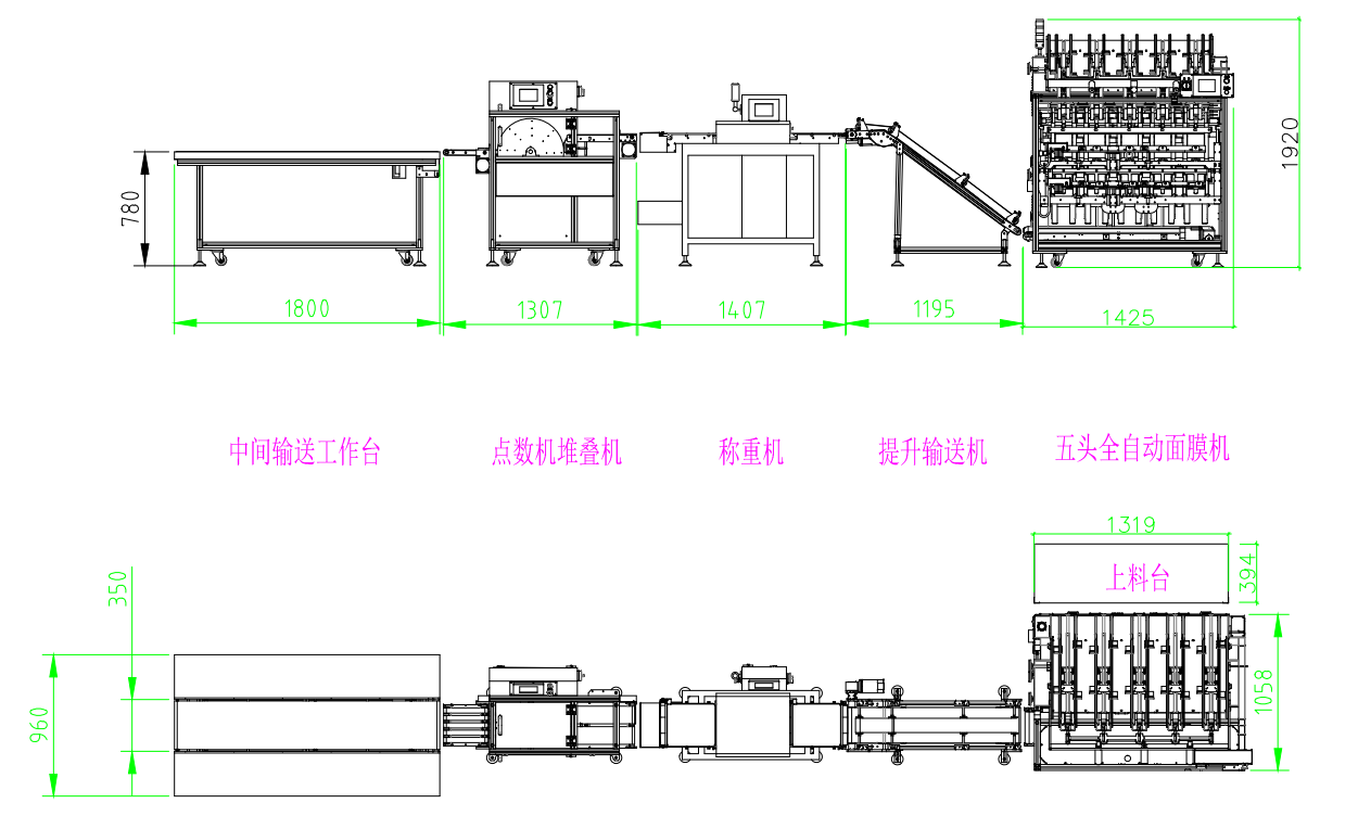 把從全自動面膜機生產出來的成品面膜提升到流水線高度