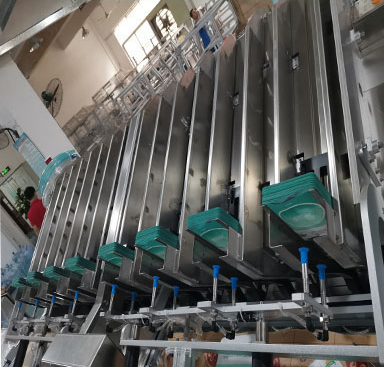 1、面膜放料區(qū)域空間大(8個(gè)工位批量生產(chǎn),效率高,也不會(huì)因?yàn)閬聿患胺琶婺ざ鴮?dǎo)致停機(jī))